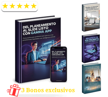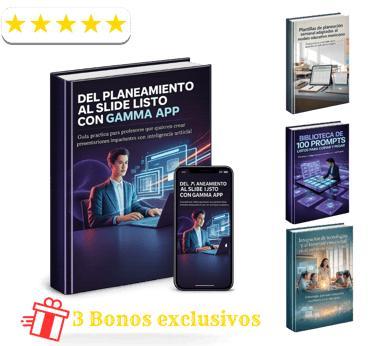 Al adquirir hoy el e-book “Del Planeamiento al Slide Listo con Gamma App”, recibirás completamente GRATIS 3 bonos exclusivos de regalo.